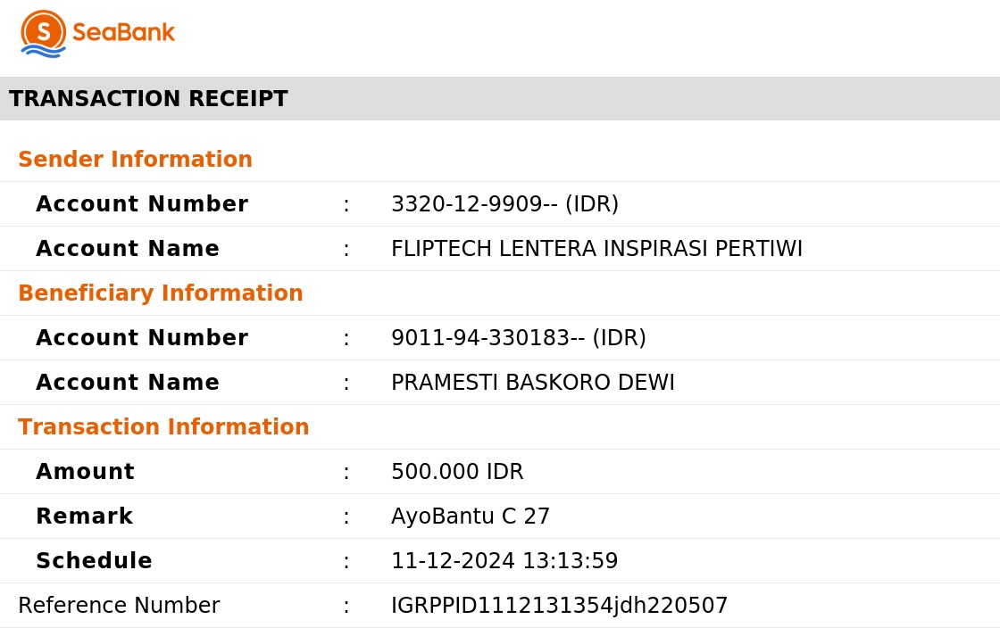 Melalui event Selari Chill Out Run Bali 2024 telah terkumpul sebesar Rp. 7.154.009 yang dimana dana donasi tersebut di donasikan untuk program #BantuMakan Ayo Bantu Saudara Kita yang Kelaparan yang di salurkan oleh Ayobantu bersama Komunitas Satu Hati. Penyaluran bantuan ini dilaksanakan pada tanggal 8 September 2024 di Dusun Paleg Kaja, Desa Tianyar, Kecamatan Kubu, Karangasem – Bali. Sebanyak 200 paket makanan untuk Anak – Anak dan Lansia dengan alokasi penggunaan dana sebesar Rp. 3.250.000. Sisa dana donasi akan disalurkan kembali pada periode berikutnya di bulan Oktober.